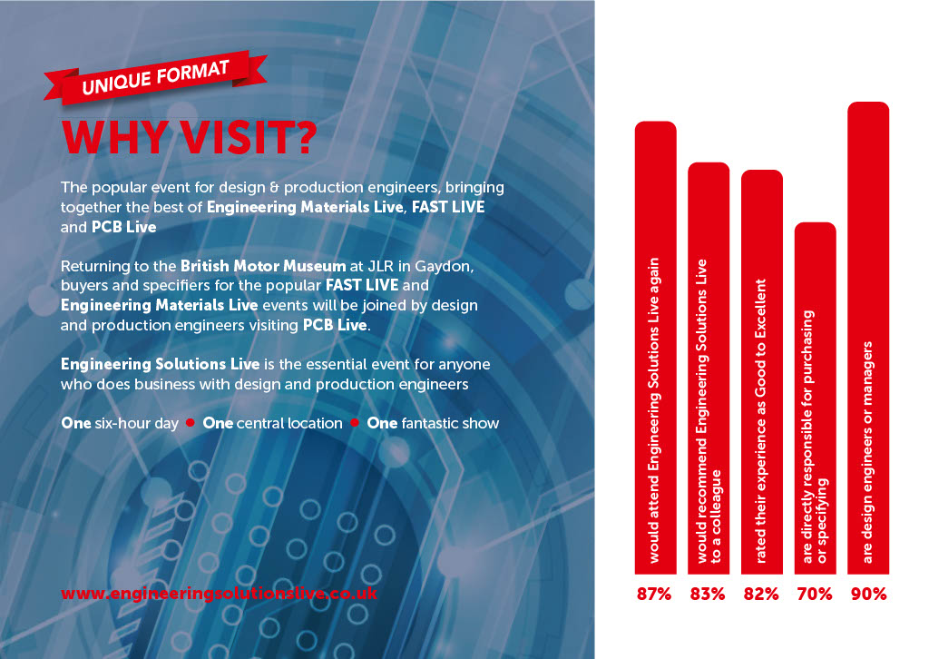 Returning to the British Motor Museum in Gaydon on Thursday 23rd March 2023, Engineering Solutions Live is your one-stop-shop for new contacts and thought leadership in the engineering sector.
